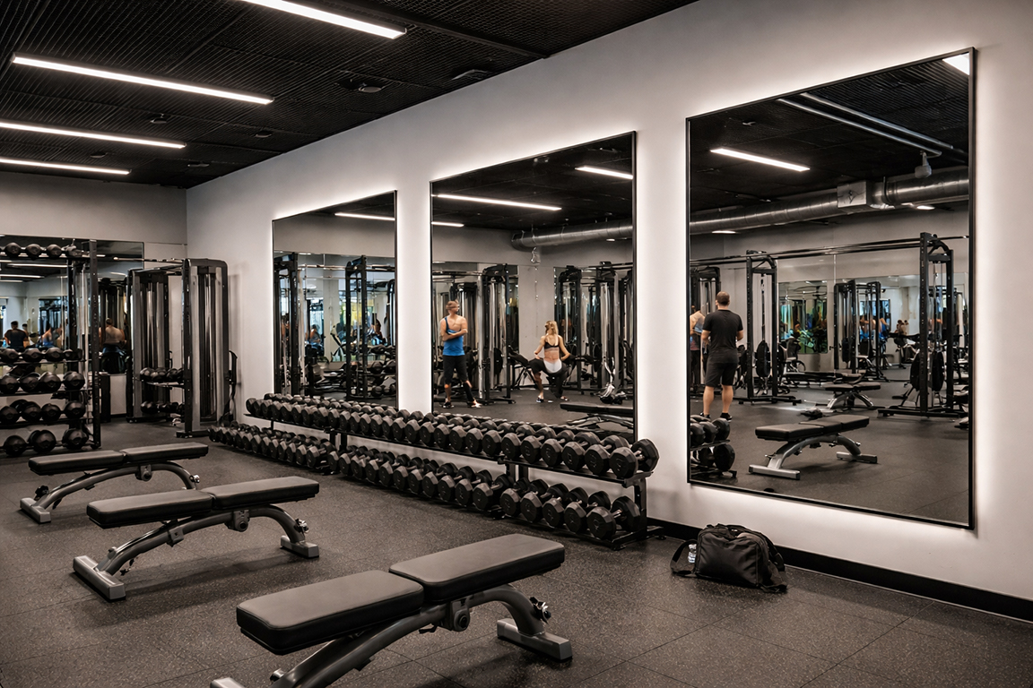 U prostorima kao što su teretane, pilates, joga ili plesni studiji, ogledalo nije samo dekoracija – ono je ključni alat za rad. Kroz njega korisnici kontrolišu pokrete, posturu i tehniku izvođenja vežbi.